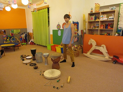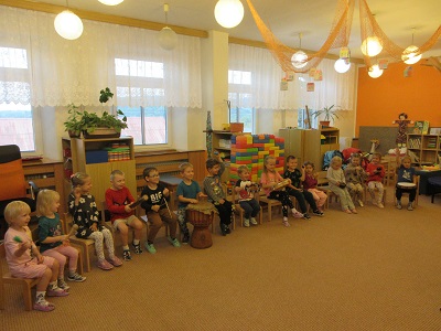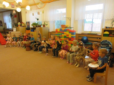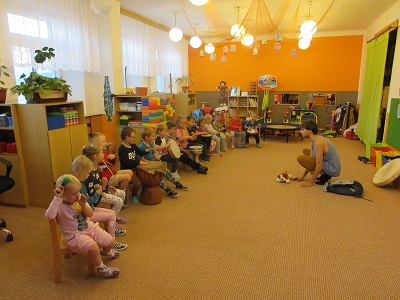 Výukový program Hudební detektivové. Děti pomocí tradičních i netradičních hudebních nástrojů hledaly ztracené štěňátko.