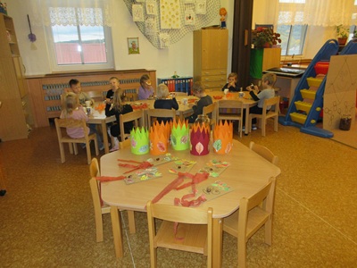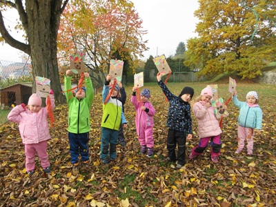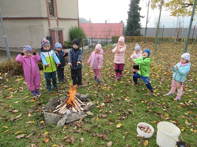 Drakiáda ve školce. Děti si vyráběly draky, plnily dračí úkoly, pekly barambory v popelu.