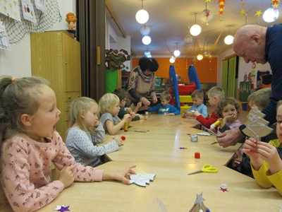 Děti vyráběly vánoční stromečky se členy Spolku ručních prací