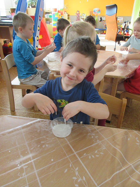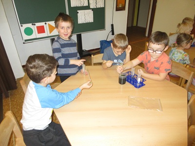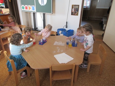 Veselá věda na téma barvy. Děti zkoumaly různými pokusy co dokáží barvy.