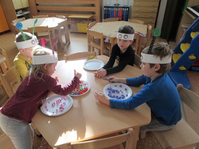 Broučkový karneval ve školce. Děti si vyrobily čelenky, broučky. Plnily broučkové úkoly. Proběhla karnevalová diskotéka.