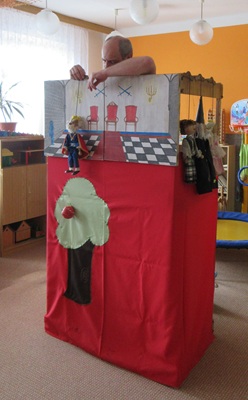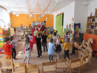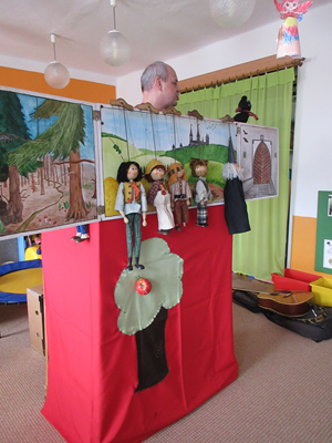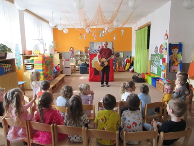 Děti se skvěle bavily při divadelním představení Dlouhý, Široký a Bystrozraký se kterým přijel pan Dan Taraba.